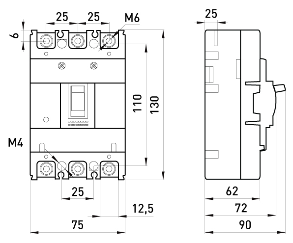 Obudowy wyłącznika - IP30, ze strony zacisków stykowych - IP00