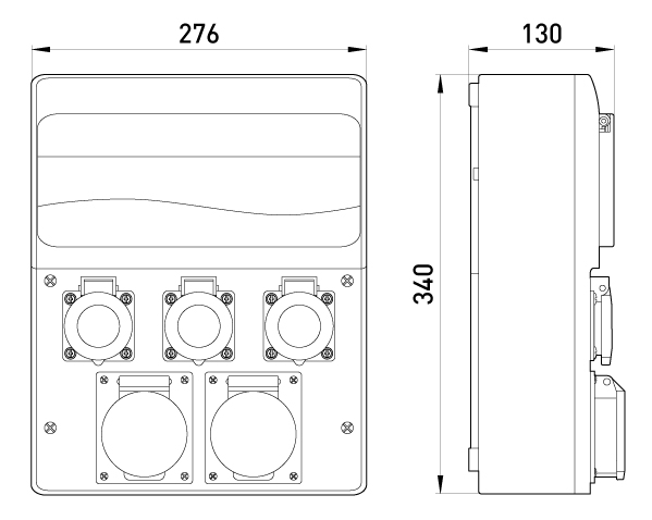 Zestaw montażowy - 1x16A (230/400V) 2,5mm2, 1x32A (230/400V) 4mm2, 3x16A 230V 1,5mm2, 13 modów. Minimalna średnica kabla zasilającego: 14 mm.