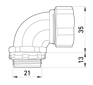 Wejście narożne e.met.angle.stand.sldx.12 do węża metalowego 12 mm (3/8") przeznaczone jest do niezawodnego i hermetycznego połączenia narożnego (IP65) węża metalowego i sprzętu elektrycznego.